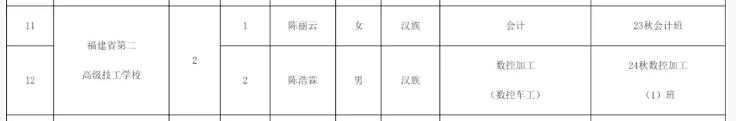 近日,教育部、人力资源和社会保障部公布2024—2025学年度中等职业教育国家奖学金获奖学生名单,我校2023级会计中级工班陈丽云、2024级数控加工中级工(1)班陈浩霖等2名学生荣获中等职业教育国家奖学金。